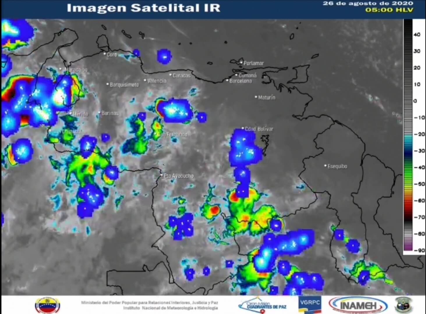 El Instituto Nacional de Meteorología e Hidrología también reporta, que el resto del territorio venezolano se mantendrá con algunas zonas cubiertas, precipitaciones dispersas y eventuales descargas eléctricas después del mediodía.