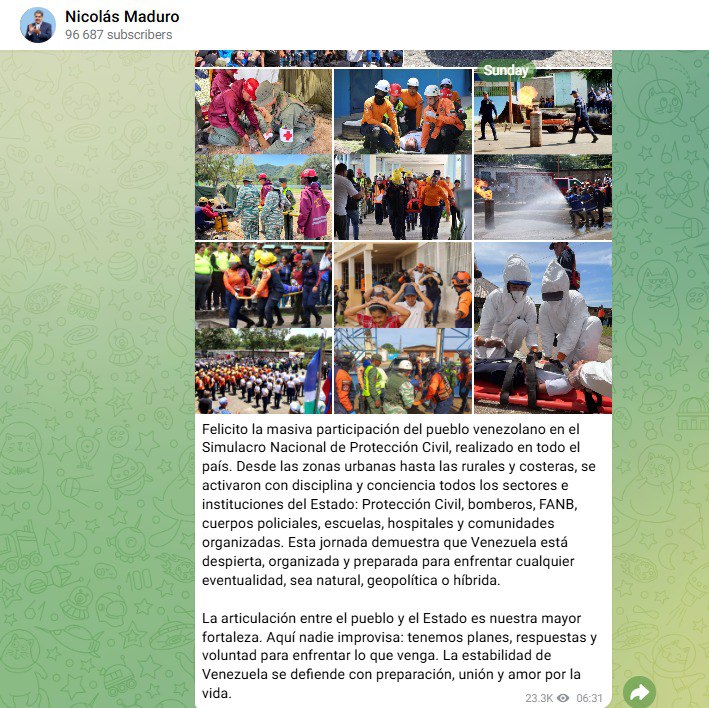 El Jefe de Estado a través de su canal en Telegram, resaltó que desde las zonas urbanas hasta las rurales, costeras y todos los sectores e intituciones gubernamentales, se activaron con disciplina y conciencia.