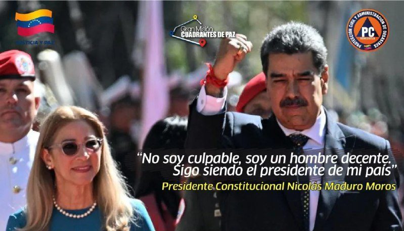 En sus primeras declaraciones ante el tribunal de Nueva York, el Mandatario Nacional de nuestro país afirmó de forma clara y firme: «No soy culpable, soy un hombre decente. Sigo siendo el Presidente de mi país»; y la Primera Combatiente declaró: «Soy totalmente inocente y soy la Primera Dama de Venezuela». Estas palabras, pronunciadas con la dignidad que los caracteriza, reafirman su compromiso con la Patria y su inocencia frente a las acusaciones infundadas.