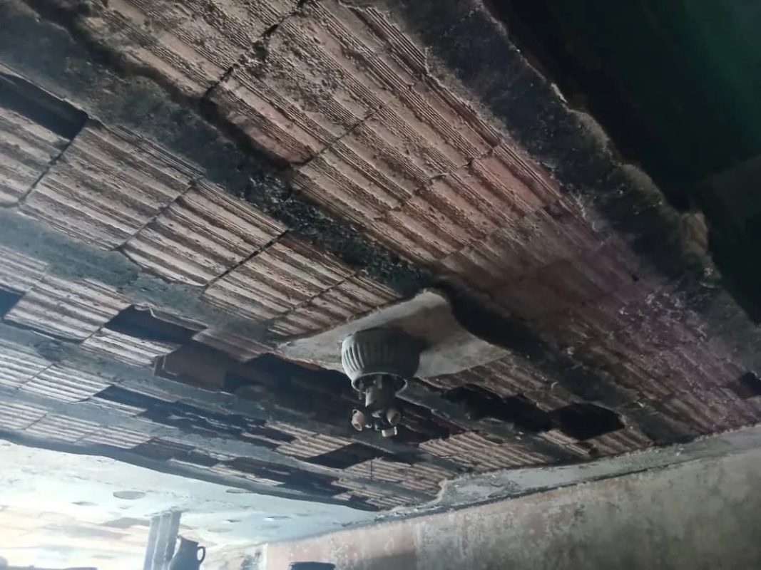 Adicionalmente se registró un daño estructural en el techado, lo cual afectó parcialmente al apartamento superior.