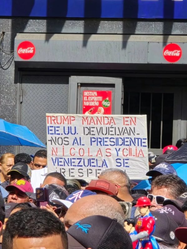 Este domingo 4 de enero, los venezolanos realizaron una manifestación masiva para condenar el secuestro del Presidente Constitucional, Nicolás Maduro Moros, y de la Primera Combatiente, Dra. Cilia Flores de Maduro.