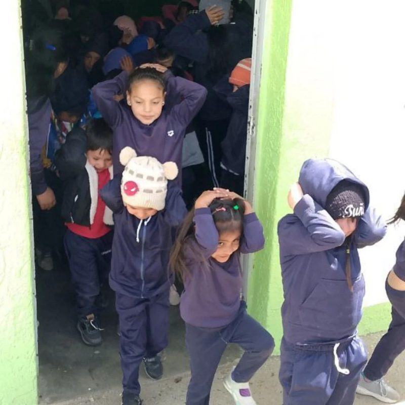 Durante la actividad formativa, la Fuerza Naranja compartió con los estudiantes, personal obrero y docente, información teórica y práctica sobre cómo actuar antes, durante y después de un evento telúrico.