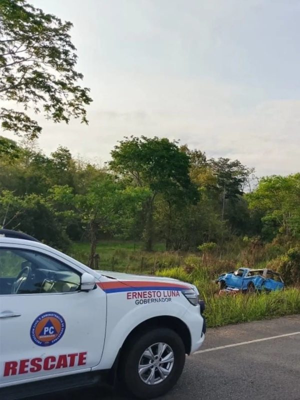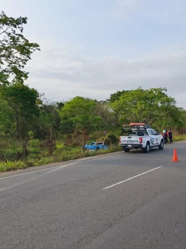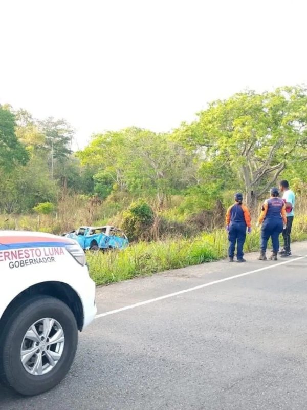 Este miércoles 22 de abril, funcionarios de Protección Civil (PC), se desplegaron para atender el volcamiento de un vehículo, en la carretera nacional vía al sur, a la altura de la entrada de Mapirito, en el estado Monagas.