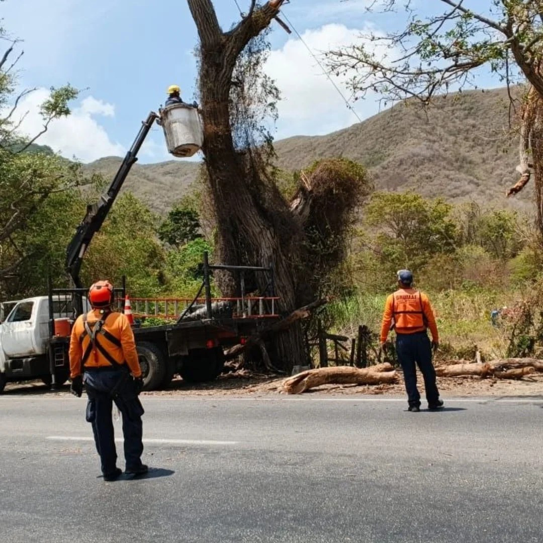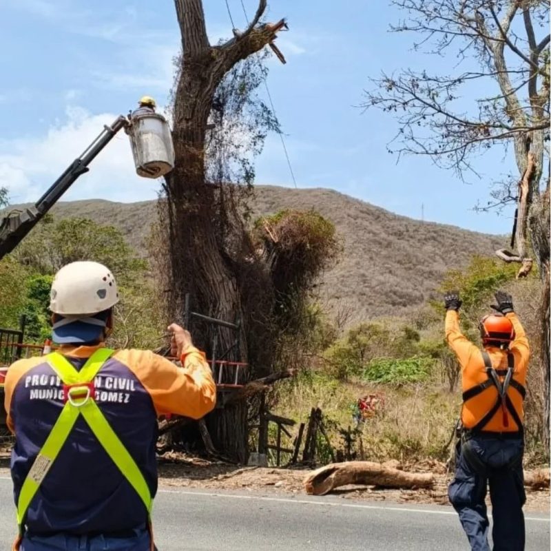 Este martes 14 de abril, funcionarios de la Dirección Estadal de Protección Civil (PC) Nueva Esparta, mitigaron riesgos al realizar una tala controlada de un árbol de Roble, en el sector Tacarigüita de la parroquia Guevara.