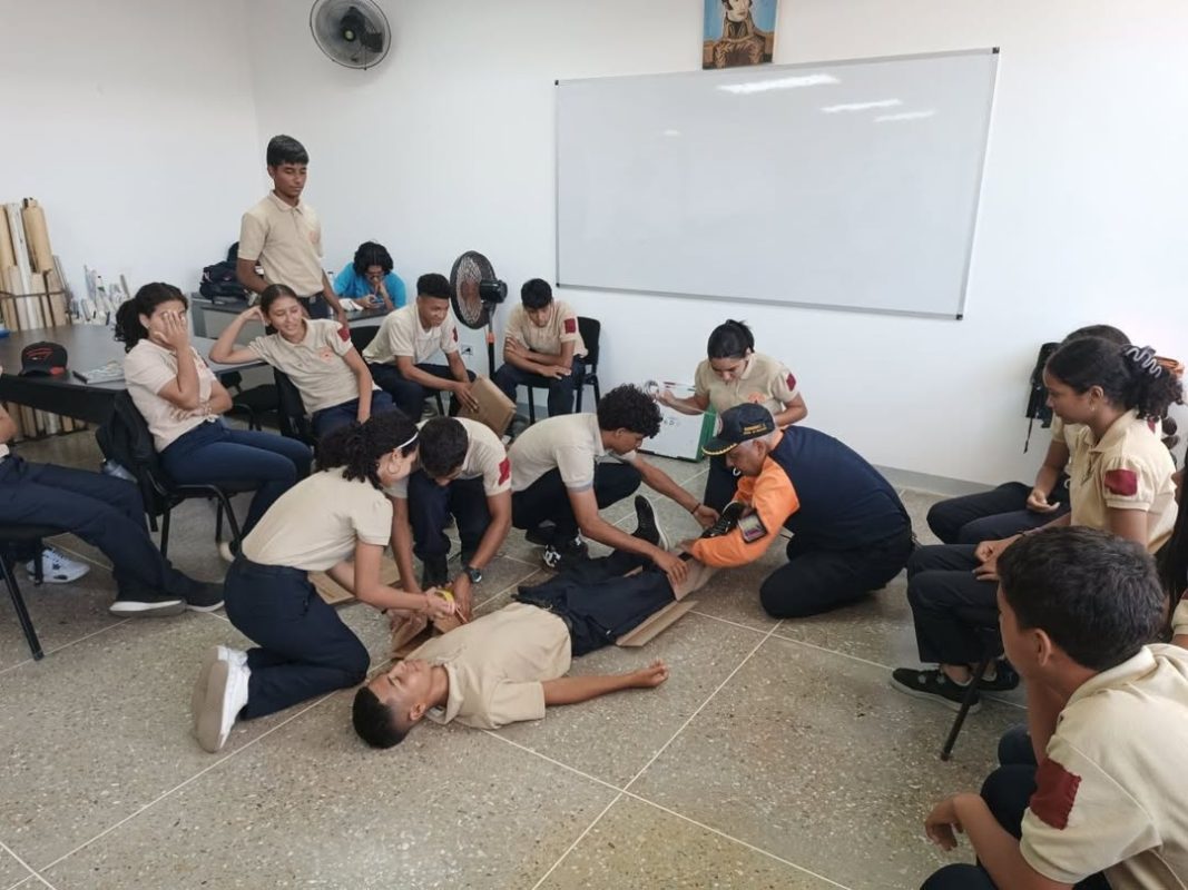 Asimismo, se desarrolló una práctica integral de primeros auxilios que abordó técnicas de inmovilización, traslado de pacientes y atención inicial de fracturas.